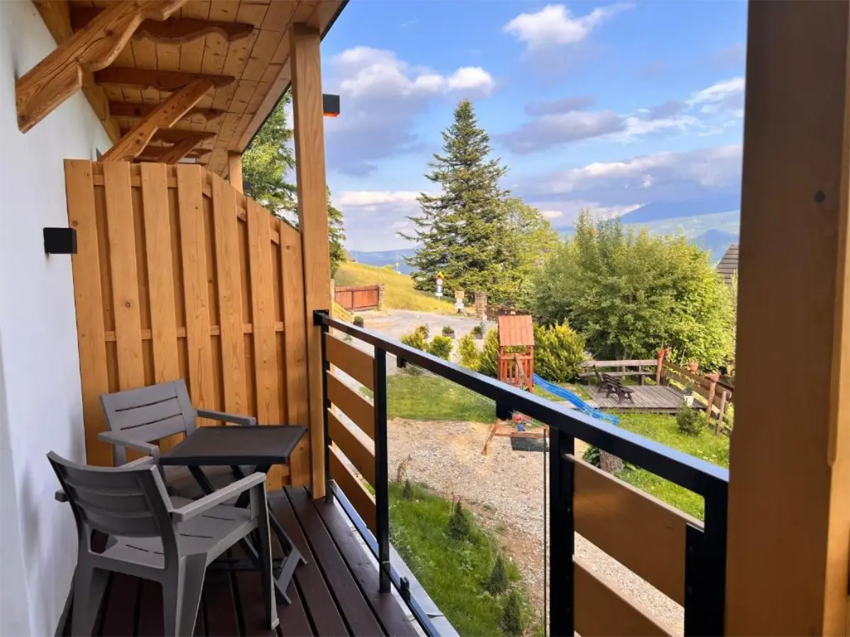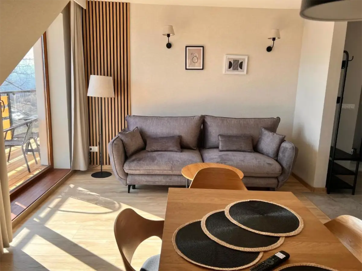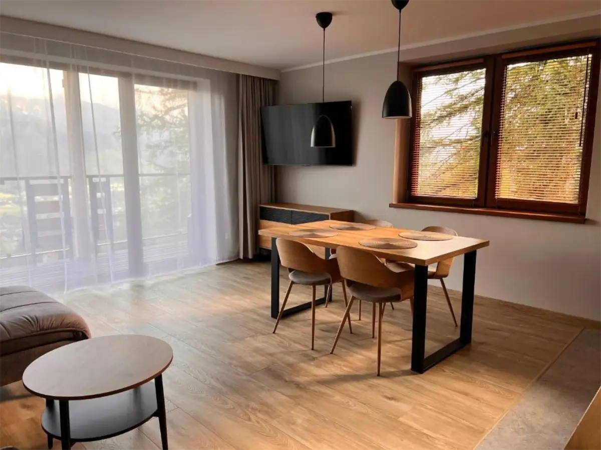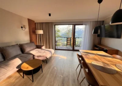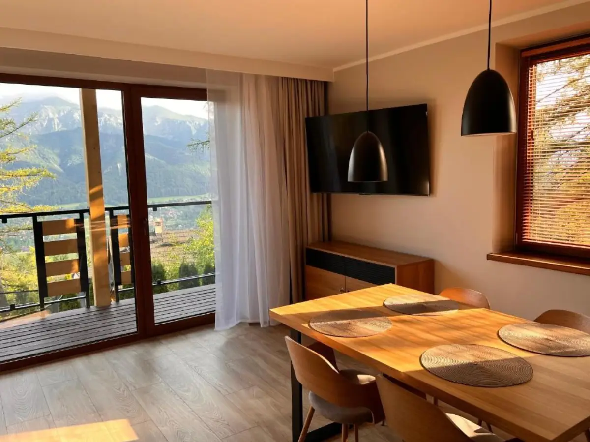 Jasne wnętrze, funkcjonalny układ oraz aneks kuchenny pozwalają poczuć się swobodnie i „jak u siebie”. Balkon z widokiem na Tatry dodaje wyjątkowego charakteru pobytowi i sprawia, że każdy dzień można rozpocząć w spokojnej, górskiej scenerii.