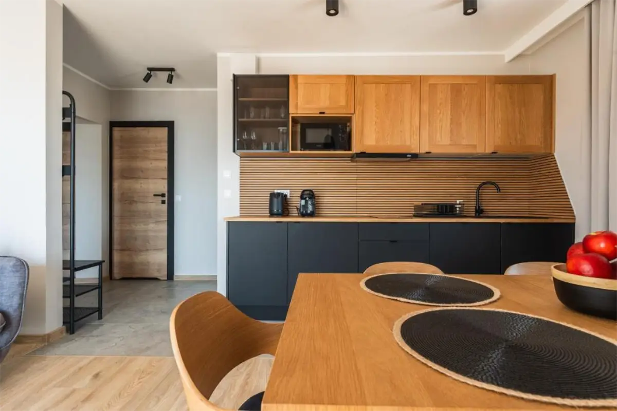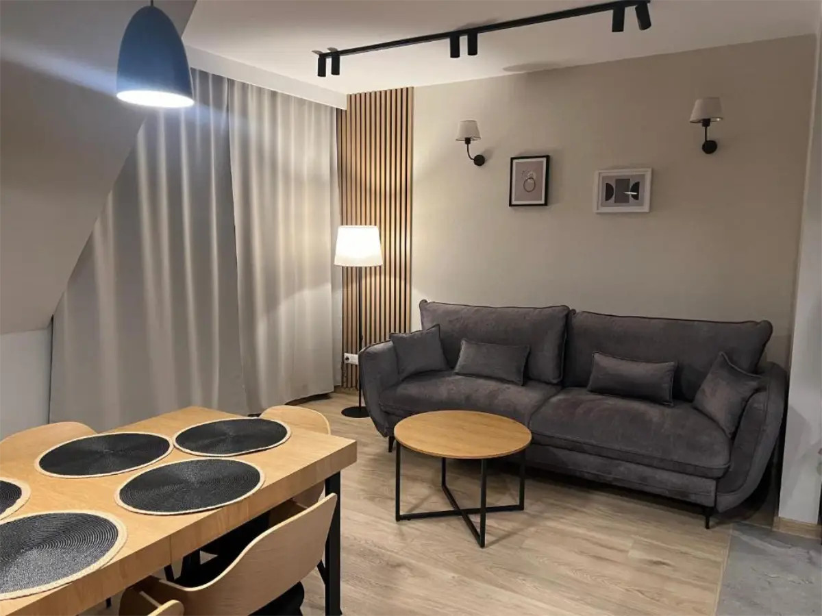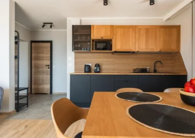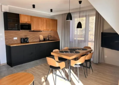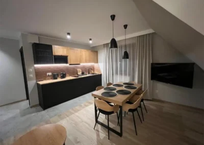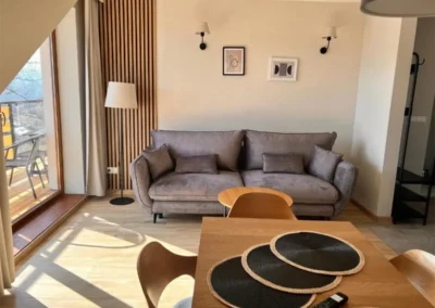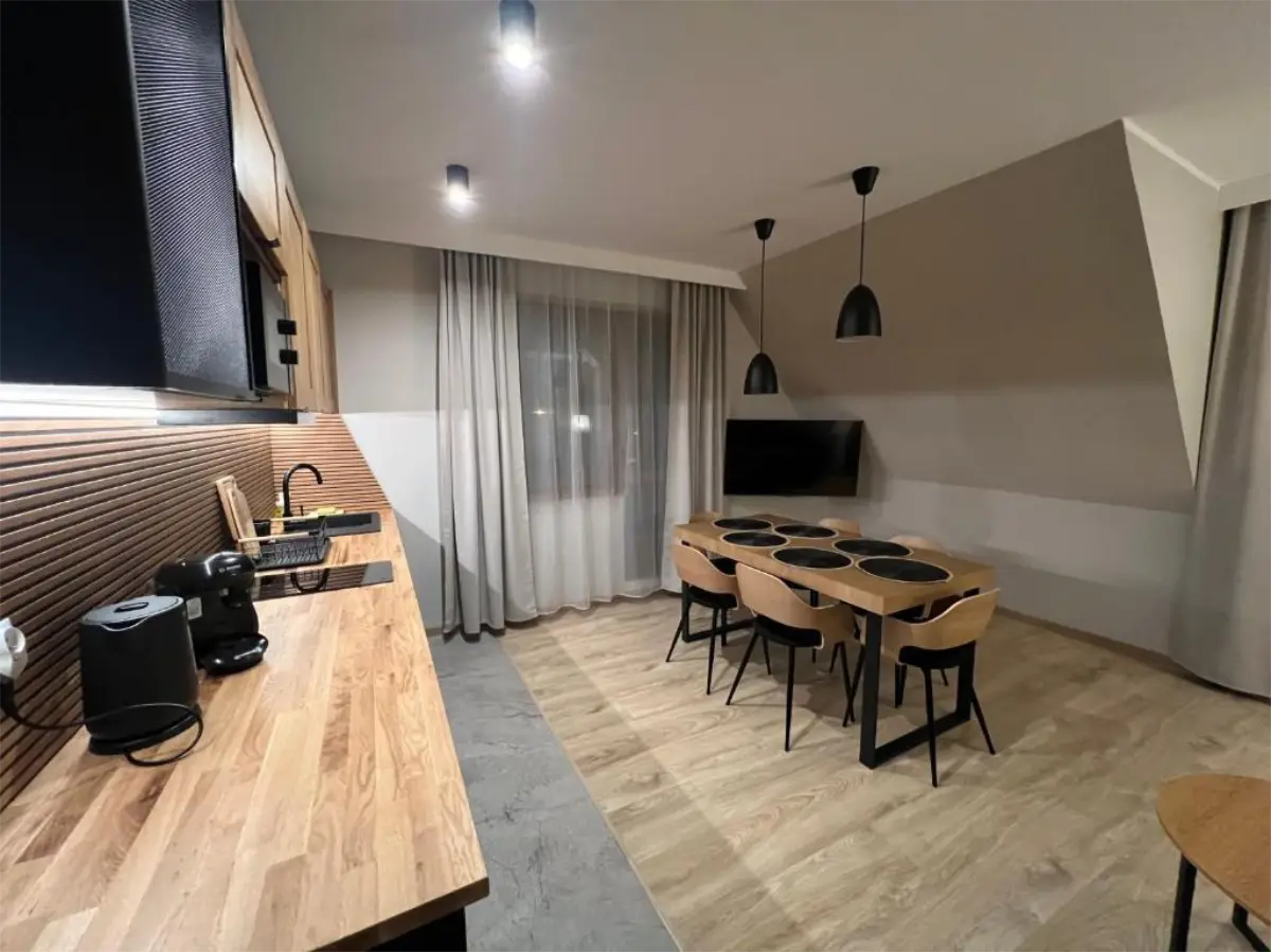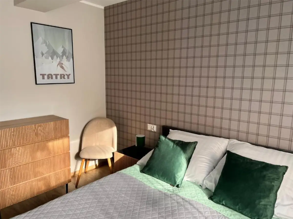 Jasne wnętrze, funkcjonalny układ oraz aneks kuchenny pozwalają poczuć się swobodnie i „jak u siebie”. Balkon z widokiem na Tatry dodaje wyjątkowego charakteru pobytowi i sprawia, że każdy dzień można rozpocząć w spokojnej, górskiej scenerii.