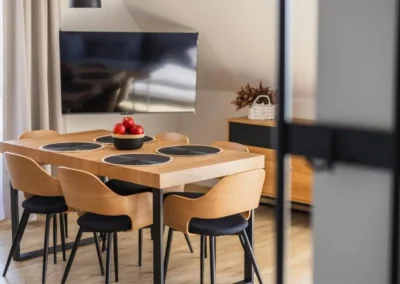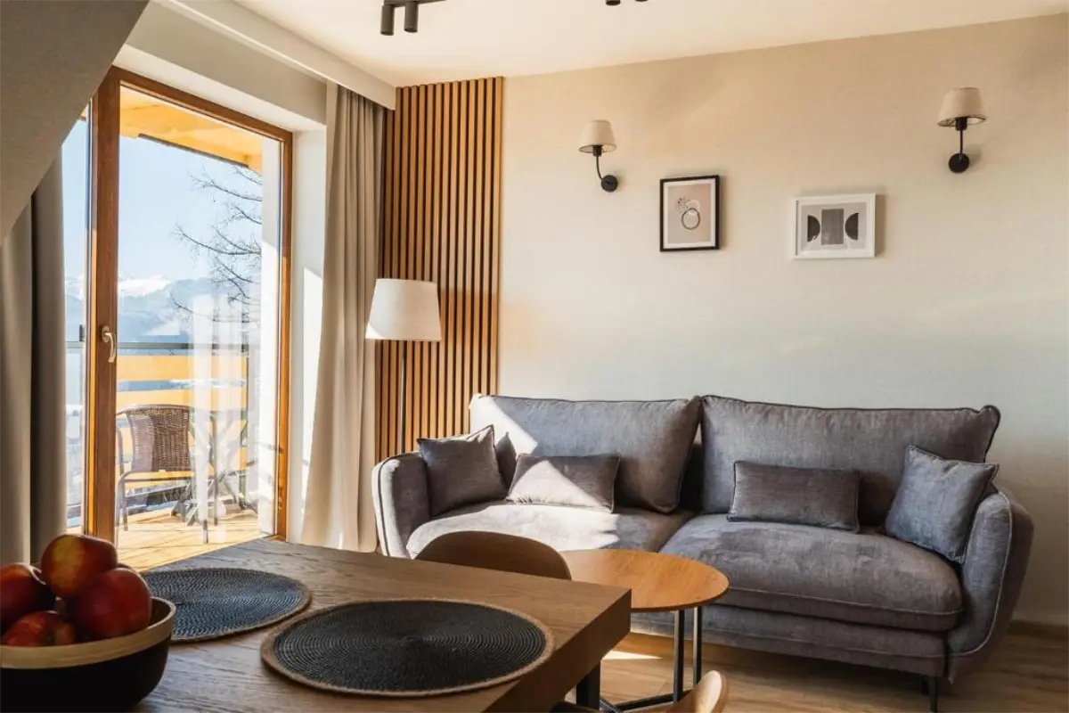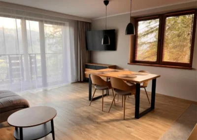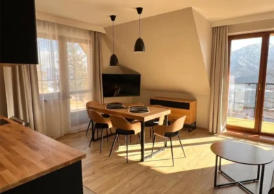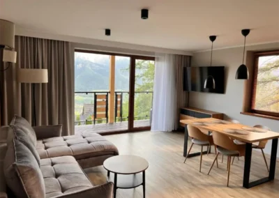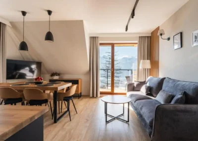 W ofercie znajdują się zarówno przestronne apartamenty, przygotowane z myślą o wygodzie par, rodzin oraz mniejszych grup. Jasne wnętrza, funkcjonalne wyposażenie oraz balkony i tarasy z widokiem na góry sprzyjają wypoczynkowi o każdej porze roku.