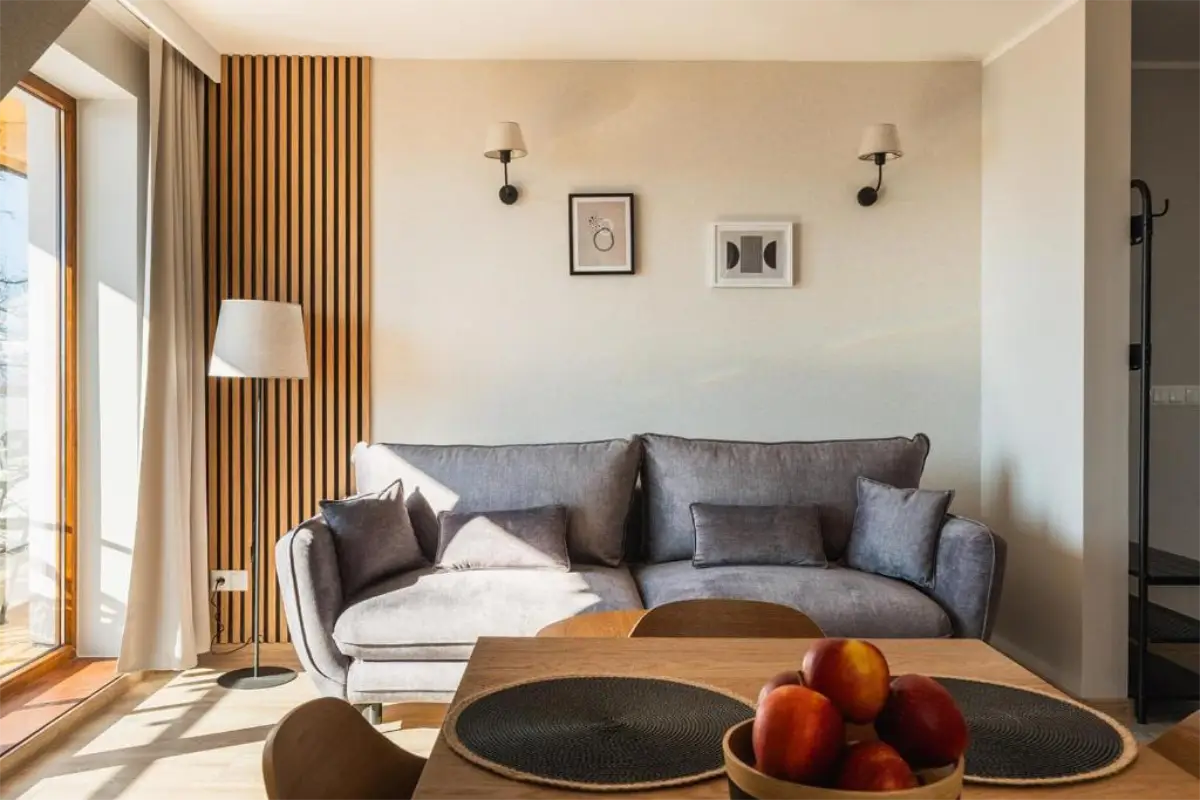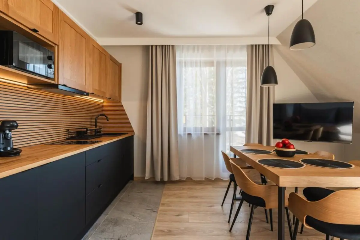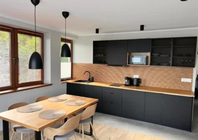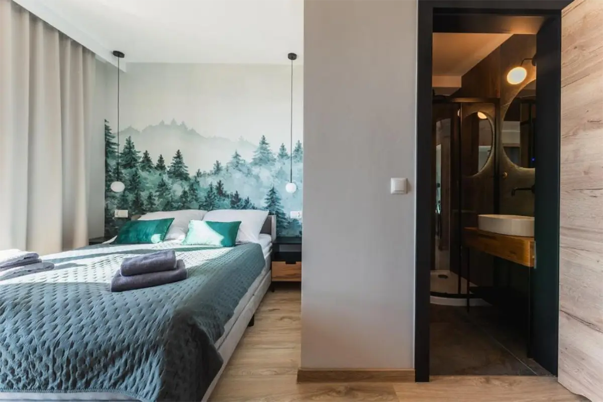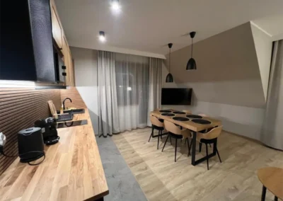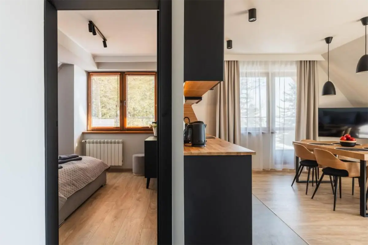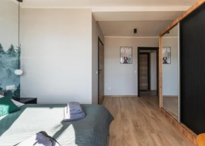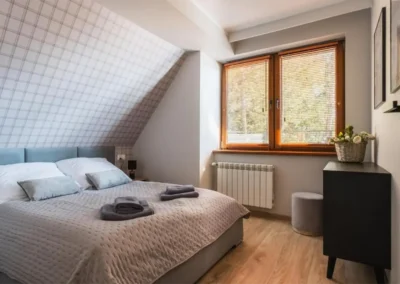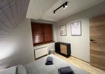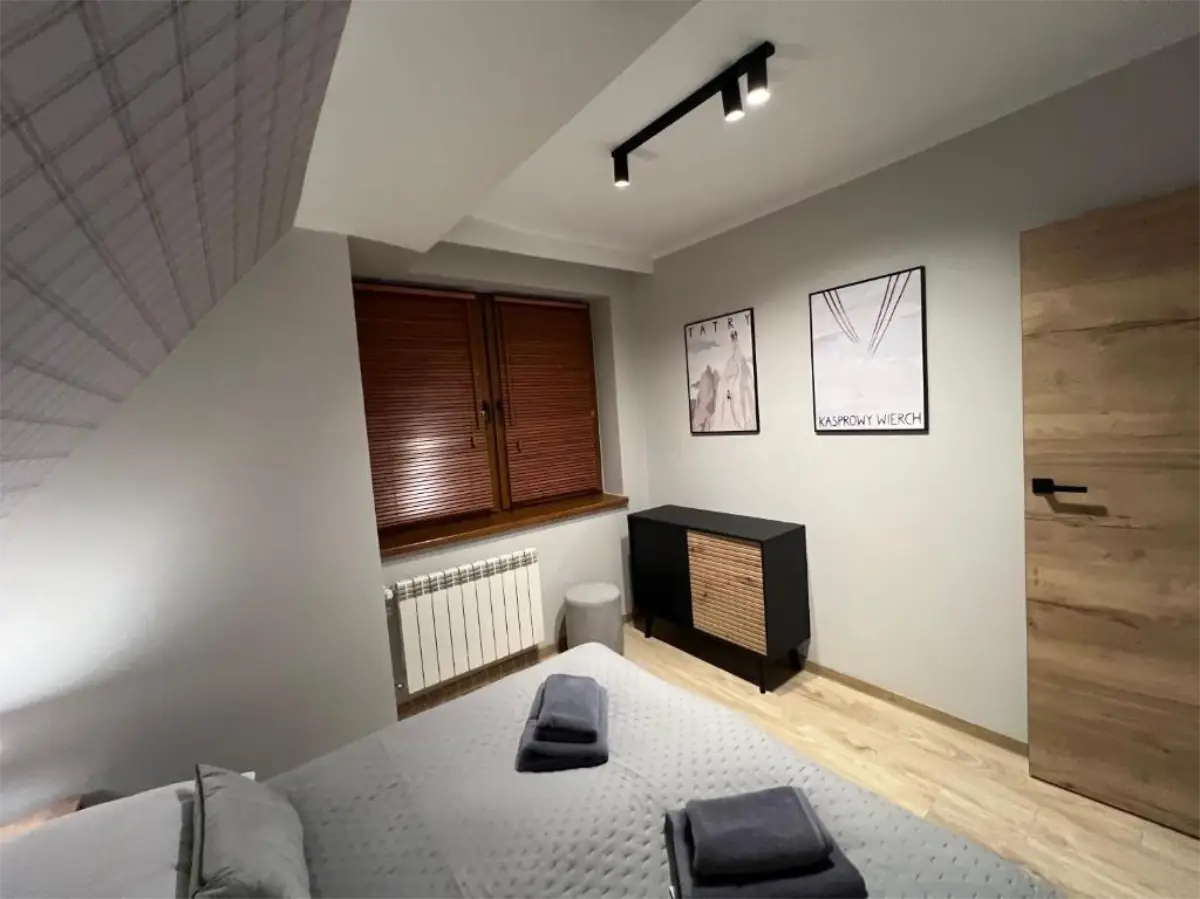 Przemyślany układ apartamentu zapewnia komfort zarówno podczas krótkich, jak i dłuższych pobytów. To miejsce idealne na romantyczny wyjazd we dwoje, ale także na spokojny urlop z rodziną lub przyjaciółmi. Apartament Zachodni pozwala odpocząć w ciszy, ciesząc się bliskością natury, a jednocześnie zachować łatwy dostęp do atrakcji Zakopanego i okolic.