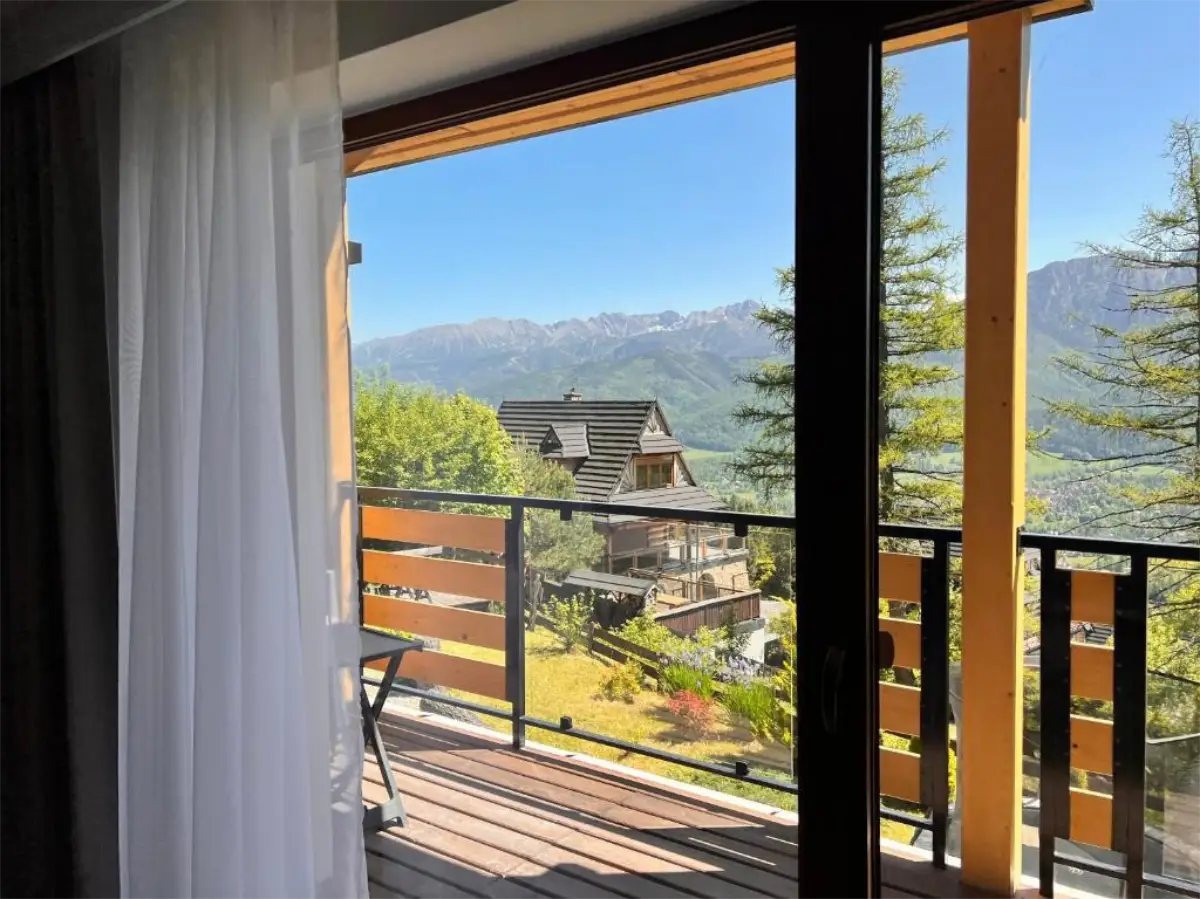 Goście mają do dyspozycji balkon z widokiem na góry